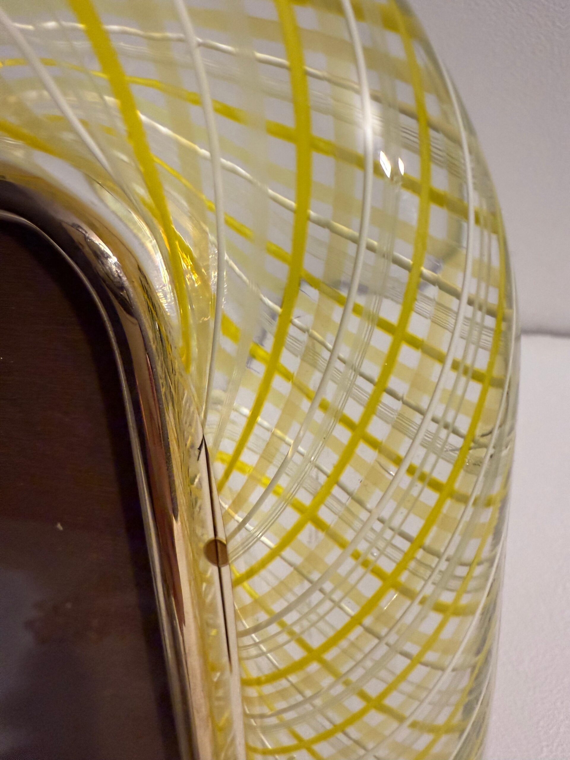 This photo frame features yellow-green Murano glass in a very lively color, overlayed with crystal by Venini, Murano. Thin yellow and white lines twist around the crystal glass frame like very thin threads.